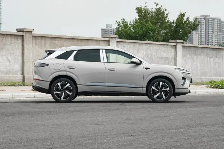 车身侧面,新车造型相对圆润,没有凸出的腰线,而是在下方裙部做了银色饰板装饰,在前后轮眉处做出了圆弧线条点缀,车身看起来比较修长。